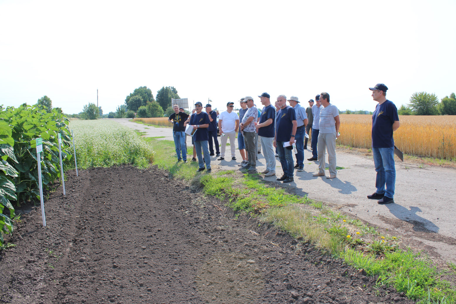 На Дні поля учасники спочатку ознайомилися з демонстраційними посівами соняшнику, проса та гречки, які представив заступник директора з наукової роботи В.П.Педос. |